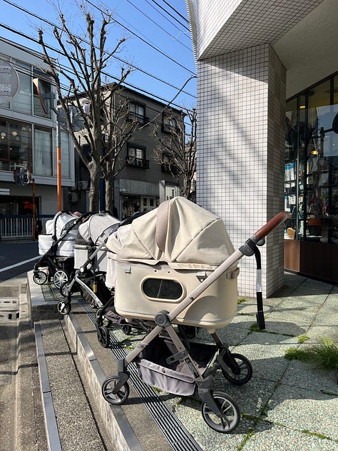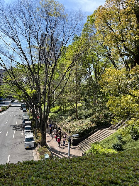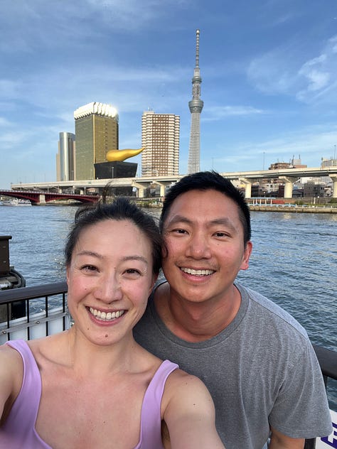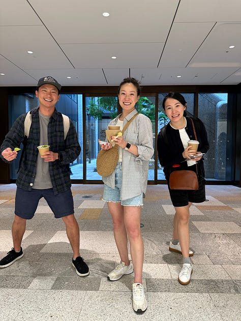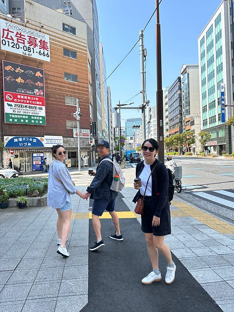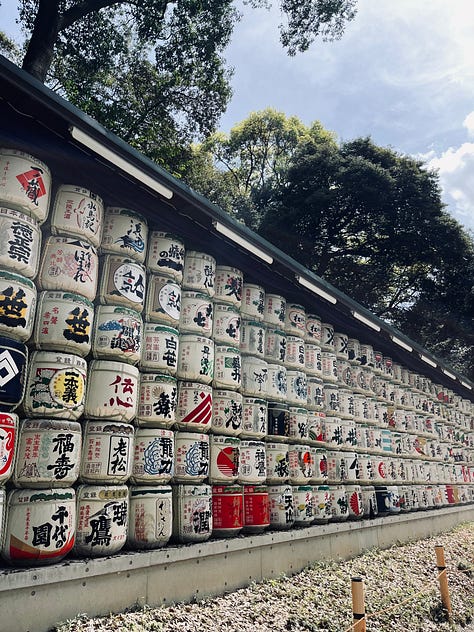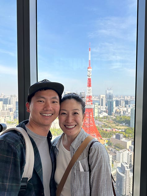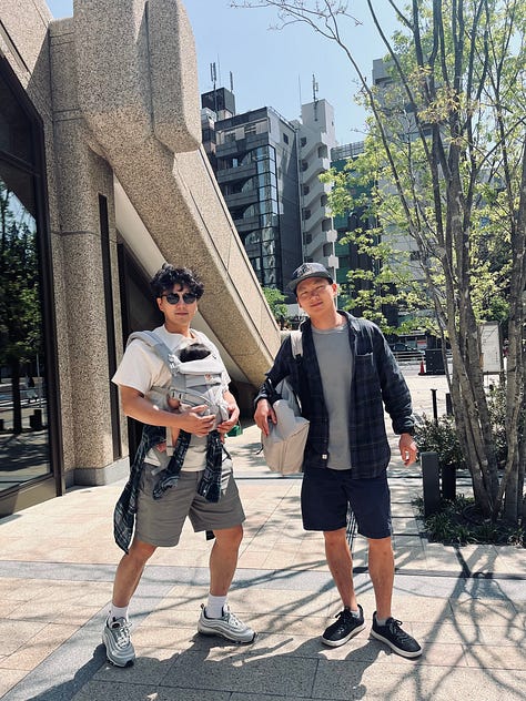 As usual, we got our steps in by visiting or re-visiting different neighborhoods. We spotted a Nike run club jogging through the streets of Shinjuku. Asher discovered an obsession with fishing themed vintage clothing in Nakameguro. We visited the consecrated sake barrels by the Meiji Jingu, and walked into a Michael Jordan shrine in Shibuya. We had a fantastic view of Tokyo Tower from the Mori JP Tower in Azabudai Hills, and caught the last bit of sakura season on the streets of I Forget Where.