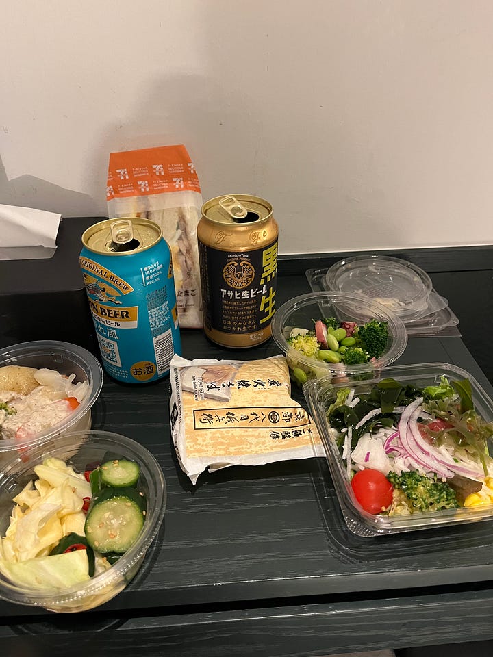 A budget balancing 7-11 dinner <3 in the hotel room.