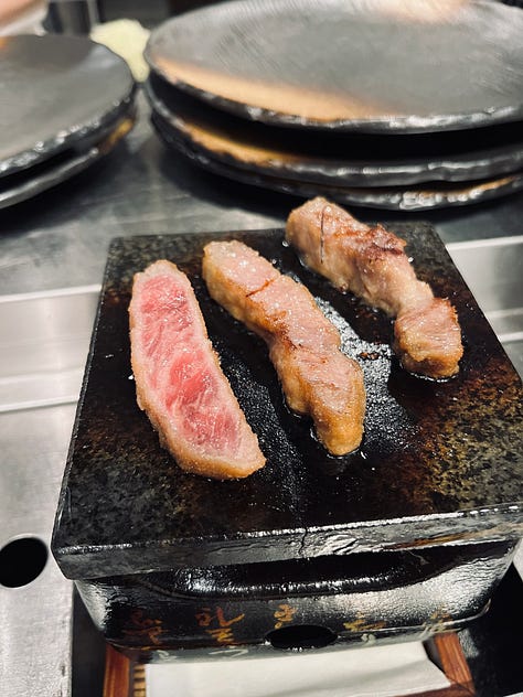 — We tried Gyukatsu for the first time at one of the Gyukatsu Motomura locations. It was novel but a bit fatty/greasy for our taste.