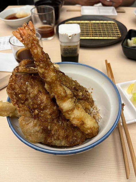 — Tendon (tempura donburi)! We ate a lot of fried food :)